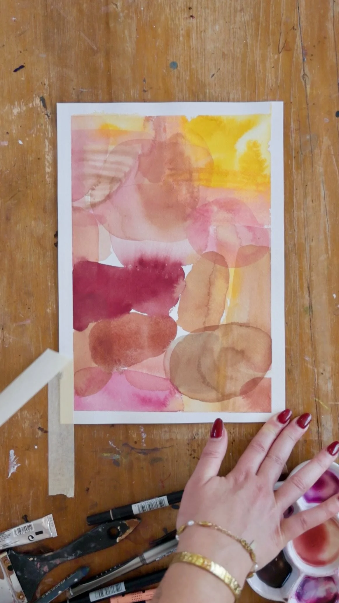 Another condition that can make your painting experience more positive is having all of your art supplies stocked up and accessible. There’s nothing more frustrating than feeling fired up to paint, only to discover that you’ve run out of your favourite colour. If you are in a lower-energy creative phase, this is the perfect time to check in on your supplies and review your space. Something as simple as re-positioning your desk, finding new storage solutions, or changing up your inspiration can do wonders.