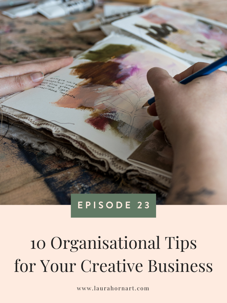 This episode we are sharing 10 organisational ideas that your future self will thank you for. You know the types of things; storing your photos, doing a stock-take of your art supplies, filing your receipts and so on. But what about scheduling your self-care and making clear work boundaries? Richie puts me in the hot seat this week, shining the light on my unhealthy work habits and reminding me of just how stubborn I can be when I get fixated on something.